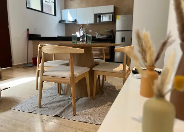 El Apartamento Departamento 2 hab con alberca y roof garden en Temozón dispone de facilidades de autoservicio, como una cocina bien equipada y un comedor al aire libre para disfrutar de sus comidas.